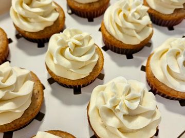 Chocolate, vanilla, marble, strawberry, lemon, fun-fetti, peanut butter, almond, red velvet Frosting flavors Chocolate, vanilla, strawberry, brown sugar maple, lemon, cream cheese, peanut butter, chocolate chip cookie dough, blueberry, lavender, chocolate ganache, almond